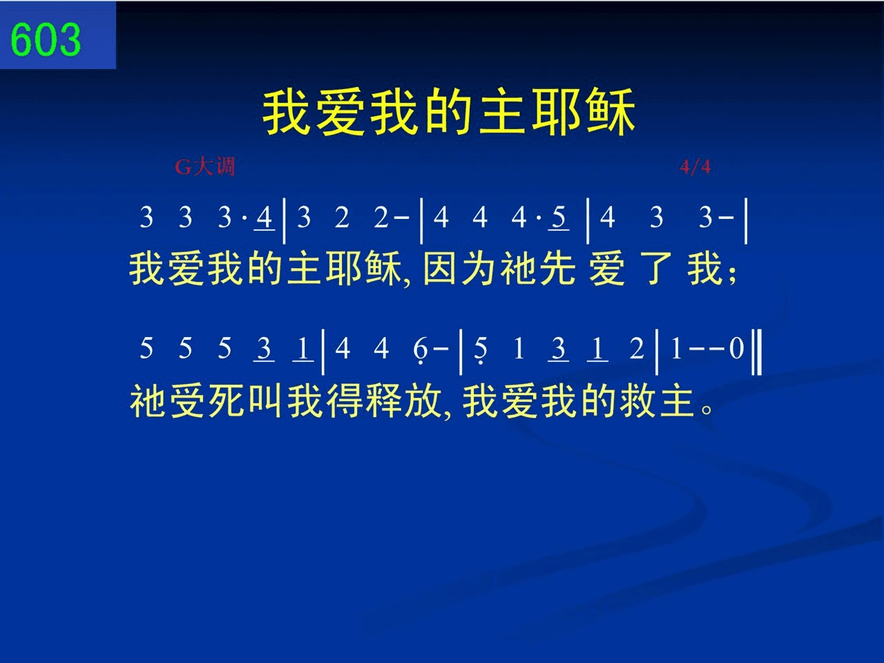 我爱我的主耶稣,因为祂先爱了我;祂受死叫我得释放,我爱我的救主。