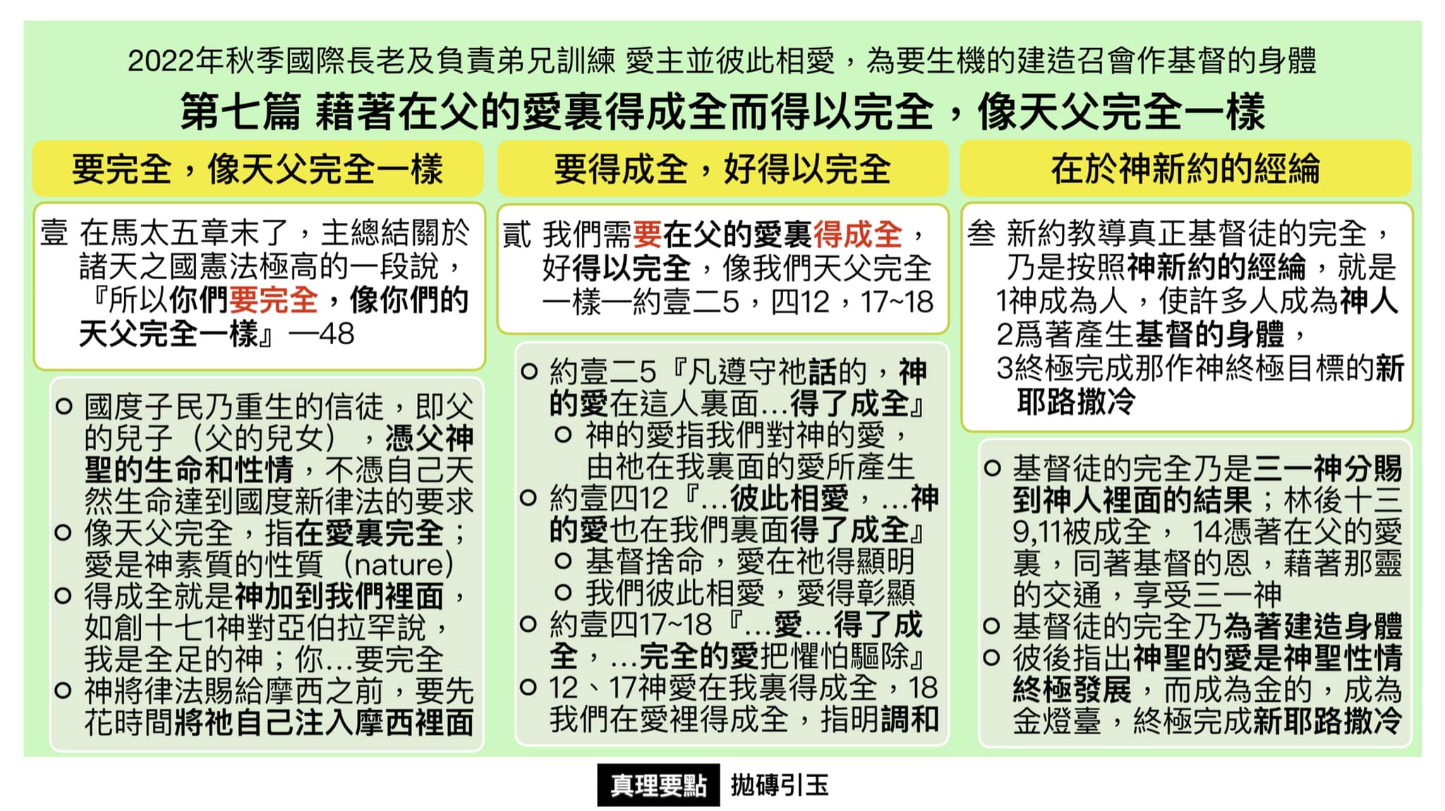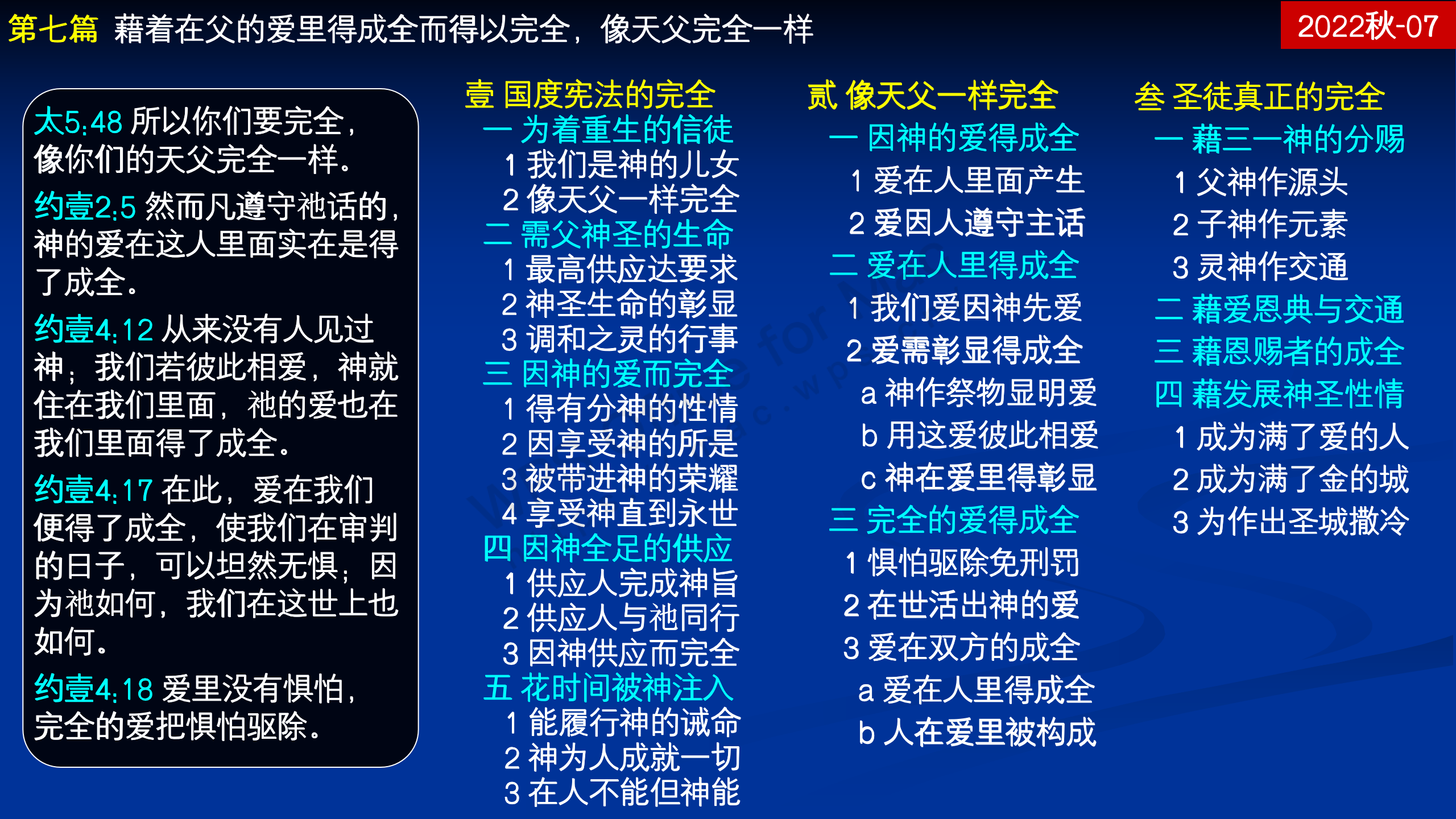 第七篇 借着在父的爱里得成全而得以完全,像天父完全一样
