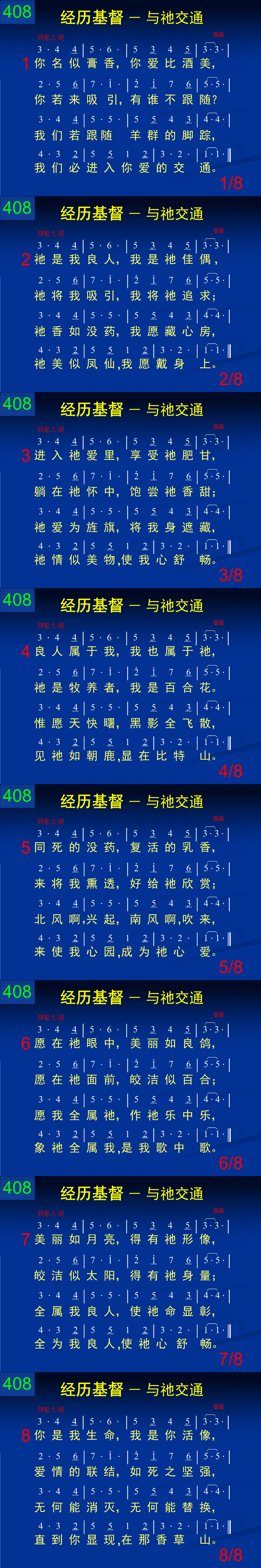 读经:歌一2~4,二8~9,三9~10,四12~16,六10、13,七11,八13~14