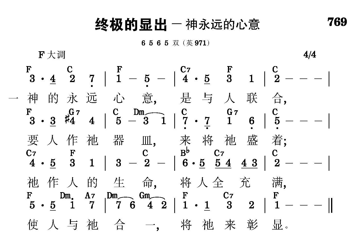 与祂同享荣耀,合一到永远。