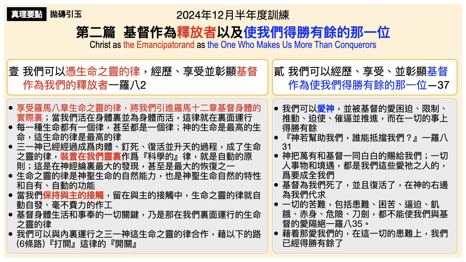第二周 基督作为释放者以及使我们得胜有余的那一位